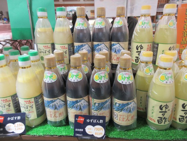 恵みの里では、ゆずぽん酢、ゆず酢、かぼす酢